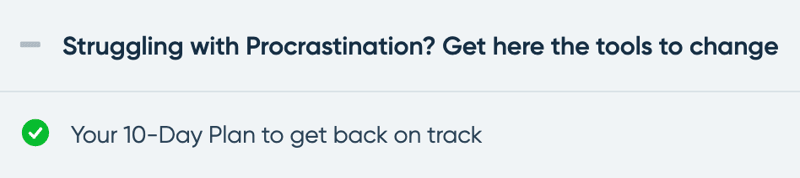 P.S. Whenever you get stuck with your learning or want to refer back to this 10-Day step-by-step plan to get back on track, just go to the section “Struggling with procrastination? Get here the tools to change” you’ll find after Level 15: